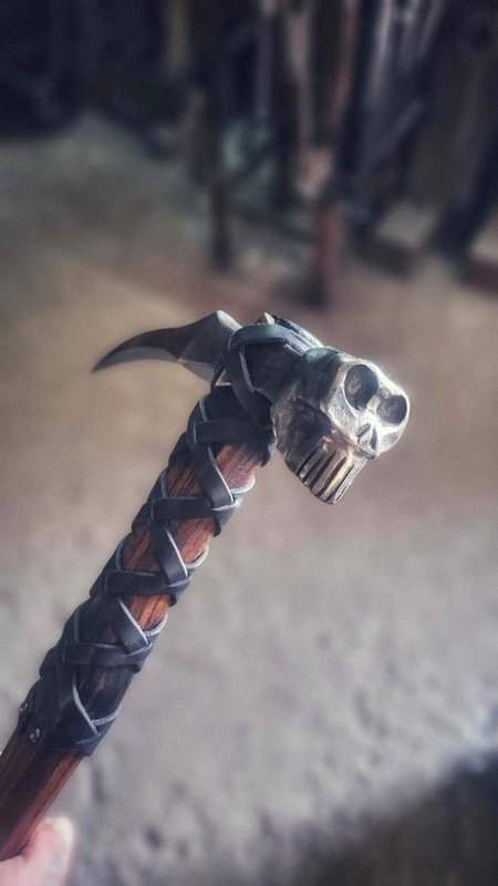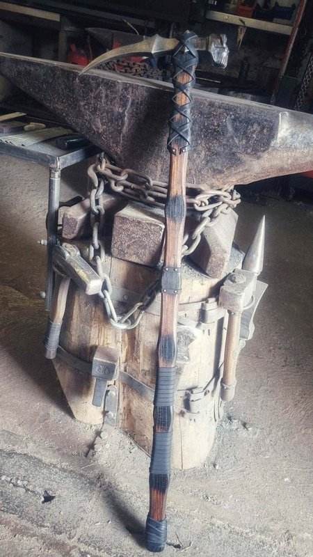 Der Stiel des Hammers besteht aus robustem Eschenholz, das sowohl Stabilität als auch eine angenehme Haptik bietet. Mit einem Gewicht von ca. 1100g und einer Gesamtlänge von ca. 96 cm ist dieses Stück perfekt ausbalanciert, um in den Händen des Benutzers sowohl Macht als auch Kontrolle zu vermitteln.