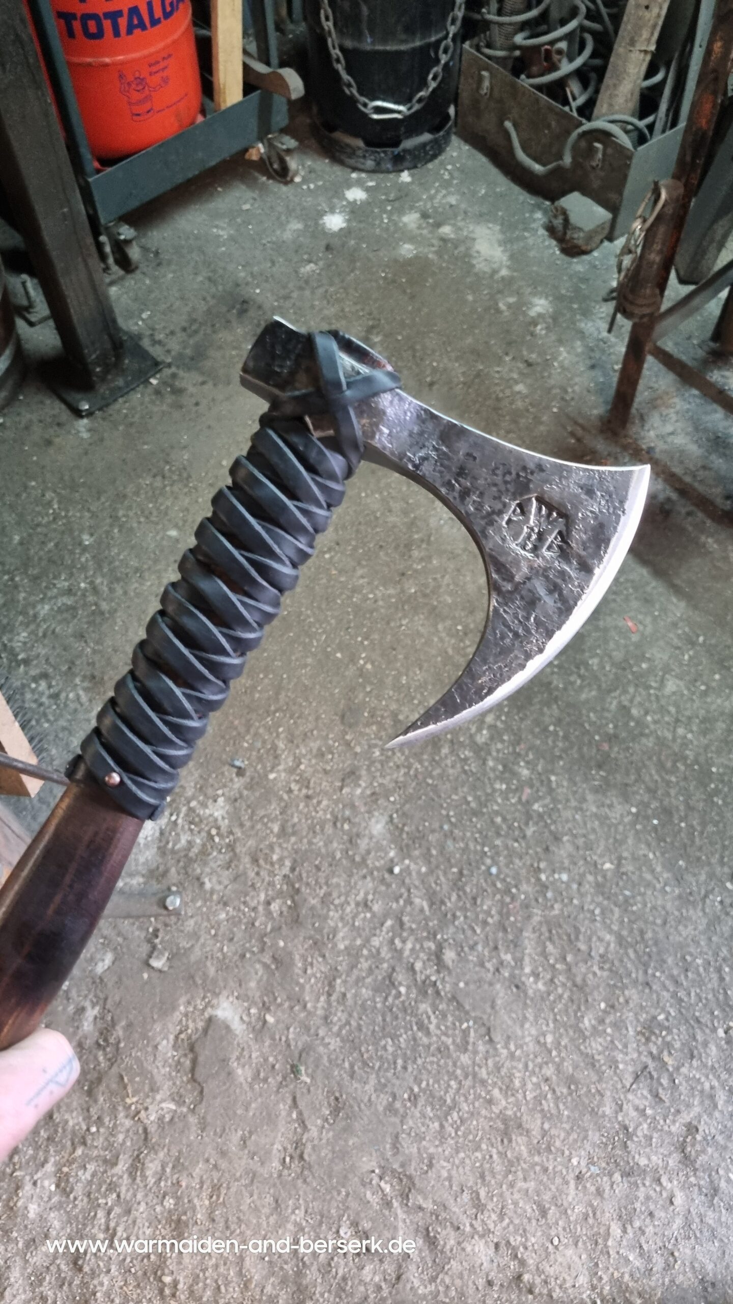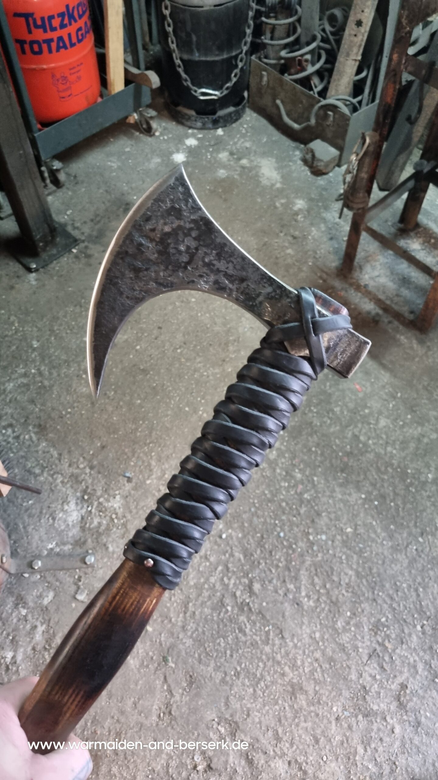 Handgeschmiedete Fantasy/Conan Replik aus Karbonstahl, mit geradem Schaft und Ledergriff