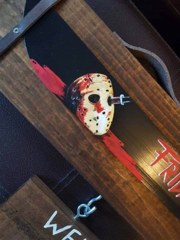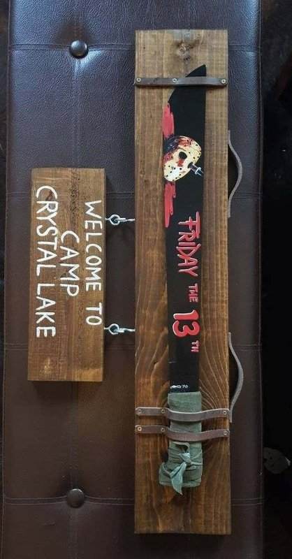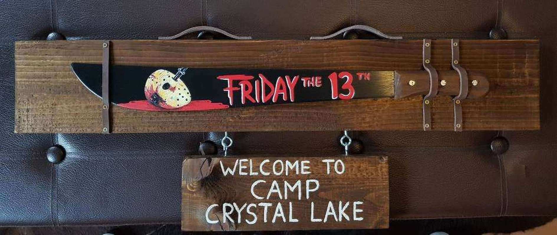 Entdecken Sie unsere handbemalte Machete mit dem ikonischen Jason-Motiv – ein absolutes Muss für jeden Fan des klassischen Horrorfilms!